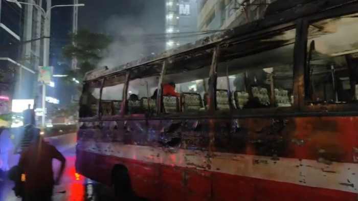 রাজধানীর মহাখালীতে চলন্ত বাসে আগুন