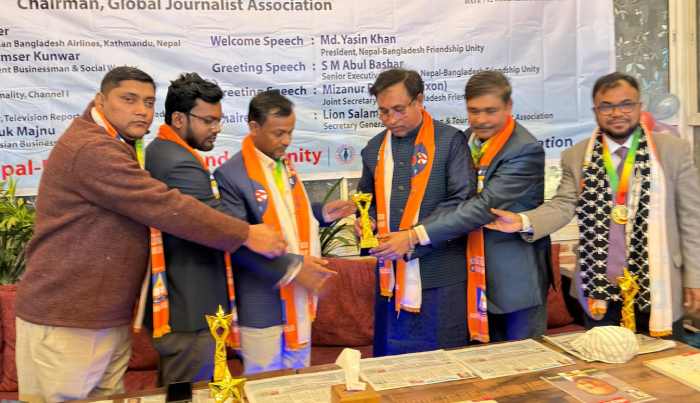 অনুষ্ঠানের প্রধান অতিথি বিমান বাংলাদেশ এয়ারলাইন্সের নেপালের কান্ট্রি ম্যানেজার মো. বাবুল আখতার বিশেষ অতিথি নেপালের বিশিষ্ট রাজনৈতিক ব্যক্তিত্ব ও হোটেল লড এর কর্ণধার ভুপেন্দ্র শামসের কুনওয়ার, বিশিষ্ট সাংবাদিক ও নেপাল- বাংলাদেশ ফ্রেন্ডশিপ ইউনিটির মহাসচিব সালাম মাহমুদ, টেলিভিশন রিপোর্টার্স ইউনিটি অব বাংলাদেশ- ট্রাব এর সাংগঠনিক সম্পাদক হাফিজ রহমান, এশিয়ান বিজনেস পার্টনারশীপ সামিট এর নির্বাহী পরিচালক গোলাম ফারুক মজনু ইয়াসিন খান এর হাতে গ্লোবাল আইকনিক গোল্ডেন অ্যাওয়ার্ড তুলে দেন।