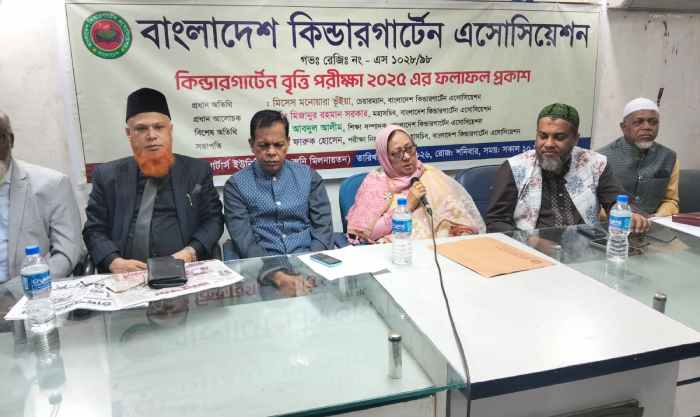 আজ সকাল দশটায় ডাকা রিপোর্টার্স ইউনিটি সাগর-রুটি কনফারেন্স রুমে বাংলাদেশ কিন্ডার গার্ডেন অ্যাসোসিয়েশনের বৃত্তি পরীক্ষা ২০২৫ এর ফলাফল প্রকাশ অনুষ্ঠান অনুষ্ঠিত হয় । অনুষ্ঠানের প্রধান অতিথি হিসেবে বক্তব্য রাখেন বাংলাদেশ কিন্ডারগার্টেন এসোসিয়েশনের চেয়ারম্যান মিসেস মনোয়ারা ভূইয়া।