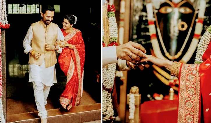 সোমবার (১ ডিসেম্বর) দুপুর ২টা ২০ মিনিটে সামান্থা তার ইনস্টাগ্রামে একগুচ্ছ বিয়ের ছবি পোস্ট করেন। একটি ছবিতে দেখা যায়, লাল টুকটুকে শাড়িতে সেজেছেন সামান্থা। পাজামা-পাঞ্জাবির সঙ্গে কটি পরেছেন রাজ। পরিচালকের হাত ধরে হাস্যোজ্জ্বল মুখে মন্দির থেকে বের হচ্ছেন।
