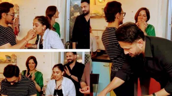 জন্মদিনের অনুষ্ঠানে উপস্থিত ছিলেন তার প্রাক্তন প্রথম স্ত্রী রিনা দত্ত, প্রাক্তন দ্বিতীয় স্ত্রী কিরণ রাও এবং বর্তমান প্রেমিকা গৌরি স্প্র্যাট। এছাড়া আমির খানের সন্তানরাও অনুষ্ঠানে অংশ নেন। কেক কাটার সময় প্রাক্তন স্ত্রী ও প্রেমিকাকে কেক খাওয়ানোর দৃশ্য নেটদুনিয়ায় বিশেষভাবে আলোচনায় এসেছে।