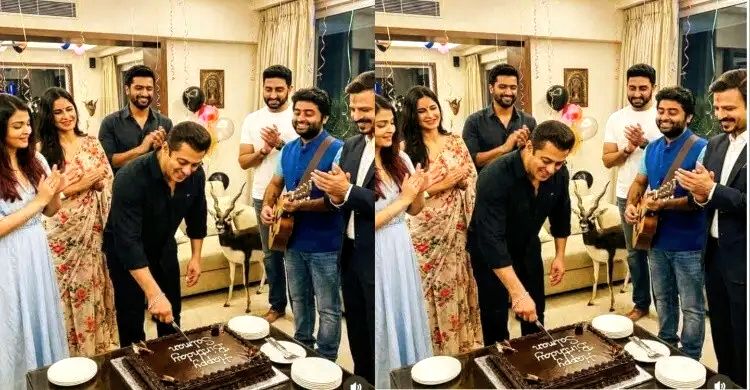 ভাইরাল হওয়া ছবিতে দেখা যায়, বেলুন, রঙিন রাংতা আর আলোয় ঝলমলে একটি ঘর। মাঝখানে টেবিলে রাখা চকোলেট কেক। হাসিমুখে সেই কেক কাটছেন সালমান খান। তার ঠিক পাশেই নীল পোশাকে ঐশ্বরিয়া রাই বচ্চন। আরেক পাশে সিফন শাড়িতে ক্যাটরিনা কাইফ।