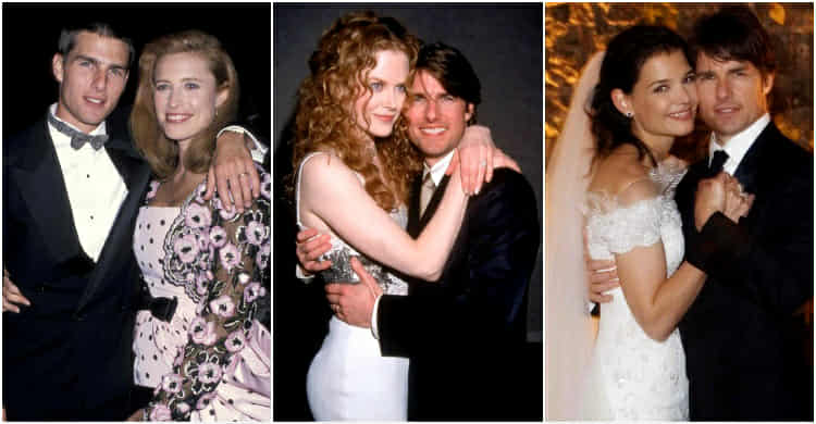 টম ক্রুজ ১৯৮৭ সালের মে মাসে প্রথম বিয়ে করেন অভিনেত্রী মিমি রজার্সকে। তিন বছরের মাথায় ১৯৯০ সালে তাদের বিচ্ছেদ হয়। একই বছর ডিসেম্বর মাসে ক্রুজ বিয়ে করেন নিকোল কিডম্যানকে। টানা ১১ বছর সংসার করার পর ২০০১ সালে তাদের সম্পর্কের ইতি ঘটে।