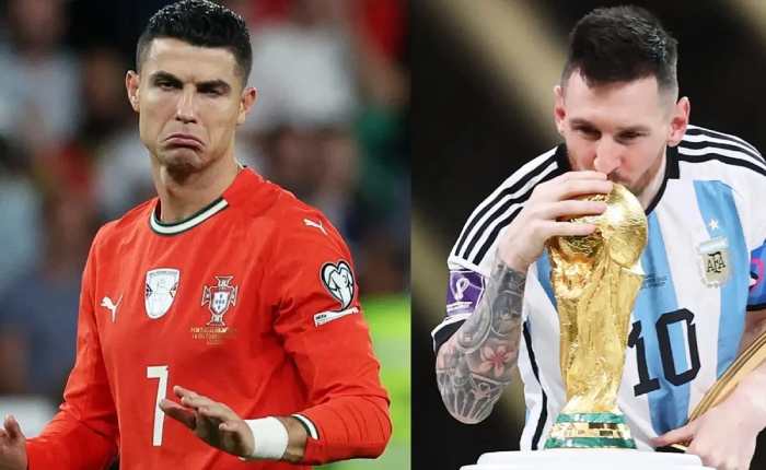 বিশ্বকাপের মঞ্চে দুজনের যাত্রা ভিন্ন পথে এগিয়েছে। ২০০৬ সালে মেসি আর্জেন্টিনার কনিষ্ঠতম স্কোরার হন, ২০১৪ সালে ফাইনালে ওঠেন এবং সবশেষে ২০২২ সালে ৭ গোল করে বহু প্রতীক্ষিত সোনালী ট্রফিটি হাতে তোলেন। অন্যদিকে, রোনাদোও ২০০৬ সালে পেনাল্টি থেকে নির্ণায়ক গোল করে নিজের আগমন জানান দেন, ২০১৮ সালে স্পেনের বিরুদ্ধে বিখ্যাত হ্যাটট্রিক করেন এবং ইউরো ২০১৬ ও নেশনস লিগ ২০১৯-এ পর্তুগালকে শিরোপা এনে দেন।