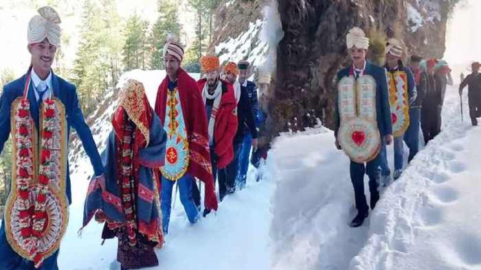 স্থানীয় রীতি অনুযায়ী গীতেশ ঠাকুর ও ঊষা ঠাকুরের বিয়ের আনুষ্ঠানিকতা সম্পন্ন হয়। তবে তীব্র তুষারপাতের কারণে বিয়ের পর নববধূকে আনার জন্য কোনো যানবাহন পাওয়া যায়নি। পরিস্থিতির কাছে হার না মেনে গীতেশ কয়েকজন বরযাত্রীকে সঙ্গে নিয়ে হেঁটে প্রায় ৭ কিলোমিটার তুষারঢাকা দুর্গম পথ পাড়ি দিয়ে নববধূর বাড়িতে পৌঁছান।