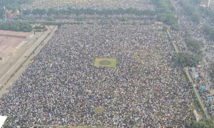 এর আগে শীত উপেক্ষা করে গতকাল মঙ্গলবার রাত থেকেই মানুষ মানিক মিয়া এভিনিউ, দলীয় কার্যালয়, এভারকেয়ারসহ বিভিন্ন স্থানে অবস্থান নিয়েছিলেন। আজ বেলা বাড়ার সঙ্গে সঙ্গে মানুষের ঢল রূপ নেয় এক বিশাল জনসমুদ্রে।