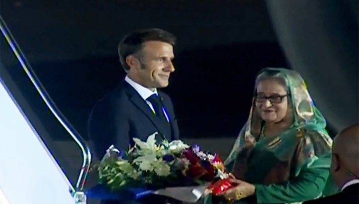 বিমানবন্দরে ফরাসি প্রেসিডেন্টকে স্বাগত জানান প্রধানমন্ত্রী শেখ হাসিনা। আজ রাতে রাজধানীর একটি হোটেলে মাখোঁর সম্মানে নৈশভোজের আয়োজন করেছেন প্রধানমন্ত্রী।