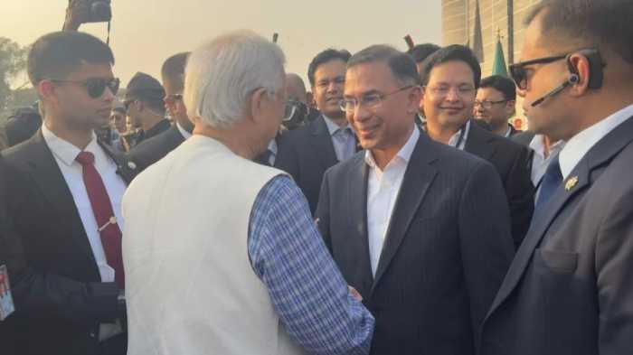 প্রধানমন্ত্রী হিসেবে শপথ গ্রহণের পর তারেক রহমান-এর সঙ্গে শুভেচ্ছা বিনিময় করেছেন বিদায়ী অন্তর্বর্তী সরকারের প্রধান উপদেষ্টা ড. মুহাম্মদ ইউনূস