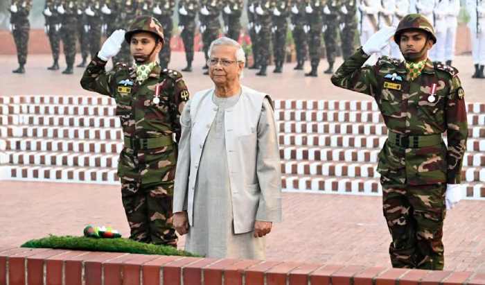 জাতীয় স্মৃতিসৌধে মহান বিজয় দিবসে বীর শহীদদের উদ্দেশে শ্রদ্ধা নিবেদন করেছেন প্রধান উপদেষ্টা প্রফেসর ড. মুহাম্মদ ইউনূস।