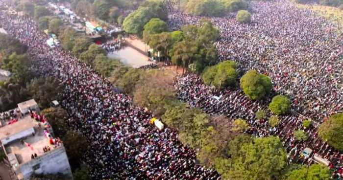 সরেজমিনে দেখা যায়, জাতীয় সংসদ এলাকা ছাড়িয়ে খামারবাড়ি, আসাদগেট ও ফার্মগেটসহ আশপাশের প্রতিটি এলাকা লোকে লোকারণ্য হয়েছে জনতার ঢলে।