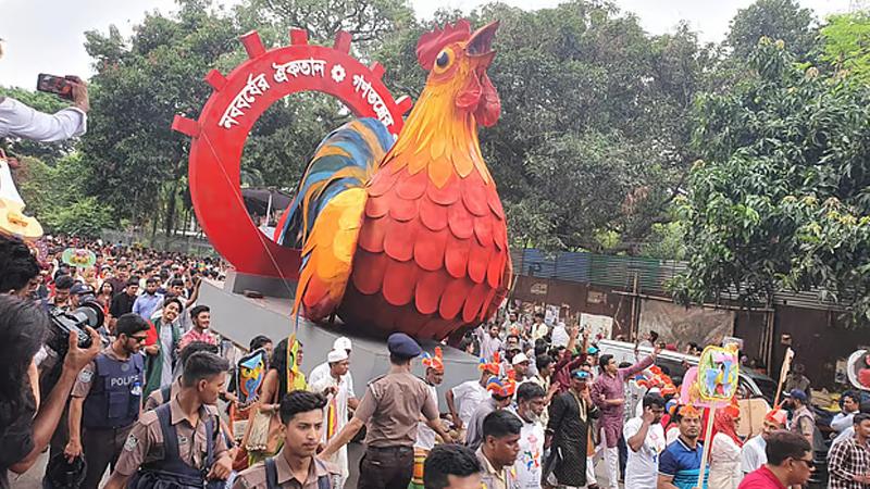 আজ মঙ্গলবার সকাল ৯টার পর ‘নববর্ষের ঐকতান, গণতন্ত্রের পুনরুত্থান’ প্রতিপাদ্য নিয়ে ঢাকা বিশ্ববিদ্যালয়ের উপাচার্য অধ্যাপক এ বি এম ওবায়দুল ইসলামের নেতৃত্বে এই শোভাযাত্রা বের হয়। এর আগে সকাল ৯টা ৩ মিনিটে জাতীয় সংগীত পরিবেশন শুরু হয়।