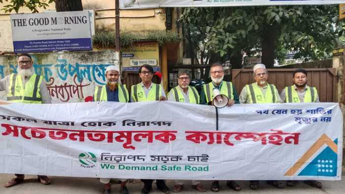 জাতীয় নিরাপদ সড়ক দিবস-২০২৫ উপলক্ষে নিরাপদ সড়ক চাই (নিসচা) কেন্দ্রীয় কমিটির উদ্যোগে রাজধানীর ব্যস্ততম কাকরাইল মোড়ে এক বৃহৎ সড়ক নিরাপত্তা ও জনসচেতনতামূলক ক্যাম্পেইন অনুষ্ঠিত হয়েছে।