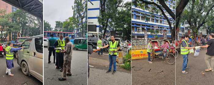 জাতীয় নিরাপদ সড়ক দিবস-২০২৫ উপলক্ষে মাসব্যাপী কর্মসূচির অংশ হিসেবে আজ রাজধানীর ব্যস্ততম এলাকা কাকরাইল মোড়ে আয়োজন করা হয় ট্রাফিক ক্যাম্পেইন ও সচেতনতামূলক লিফলেট বিতরণ কার্যক্রম। এ কর্মসূচির আয়োজন করে নিরাপদ সড়ক চাই (নিসচা) কেন্দ্রীয় কমিটি।