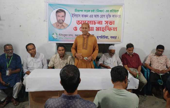 নিরাপদ সড়ক চাই (নিসচা)-এর প্রতিষ্ঠাতা চেয়ারম্যান, জনপ্রিয় চিত্রনায়ক ইলিয়াস কাঞ্চনের দ্রুত রোগমুক্তি কামনায় বগুড়ার দুপচাঁচিয়া উপজেলায় অনুষ্ঠিত হয়েছে দোয়া মাহফিল ও আলোচনা সভা।