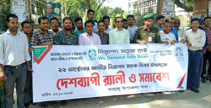 কাহালুতে জাতীয় নিরাপদ সড়ক দিবস উদযাপন উপলক্ষে র‍্যালি ও আলোচনা সভা অনুষ্ঠিত