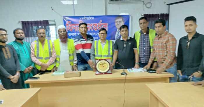 অনুষ্ঠান শেষে বিদায়ী নির্বাহী অফিসারের হাতে সম্মাননা স্মারক হিসেবে ক্রেস্ট এবং নিরাপদ স্মরণিকা ২০২৫ বই তুলে দেন নিসচা ডুমুরিয়া উপজেলা শাখার সড়ক যোদ্ধারা।