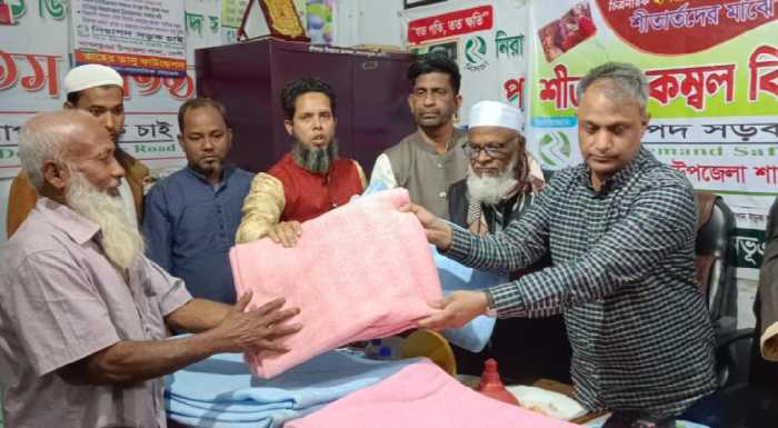 দাগনভূঞায় শীতার্ত মানুষের মাঝে নিরাপদ সড়ক চাই এর কম্বল বিতরণ