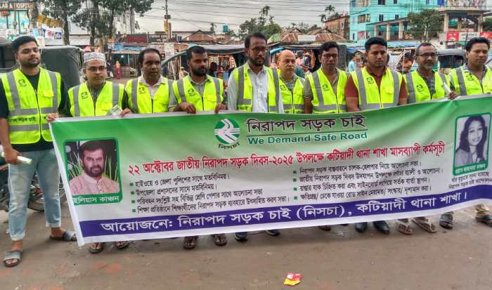 কটিয়াদি (কিশোরগঞ্জ) প্রতিনিধি: “নিরাপদ সড়ক সবার দাবি—সচেতন নাগরিক গড়বে নিরাপদ ভবিষ্যৎ” এই স্লোগানকে সামনে রেখে নিরাপদ সড়ক চাই (নিসচা) কটিয়াদি উপজেলা শাখার উদ্যোগে জনসচেতনতামূলক কর্মসূচি অনুষ্ঠিত হয়েছে।