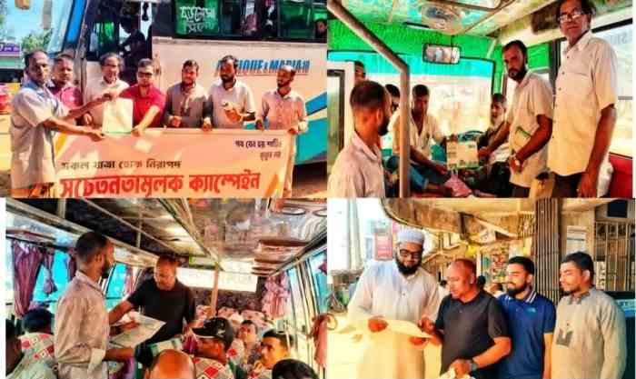 যাত্রীদের উদ্দেশ্যে তারা বলেন, চালকদেরকে কোনভাবে যেন বিরক্ত না করা হয় এবং অতিরিক্ত সময় হাতে নিয়ে বাড়ি উদ্দেশ্য যাত্রা করার জন্য আহ্বান জানানো হয়। তাঁরা পথচারীদের দেখে-শুনে রাস্তা পারাপার, জেব্রা ক্রসিং ব্যবহার ও মোবাইল ফোনে কথা না বলে রাস্তা পারাপার, দৌড়ে গাড়িতে না উঠতে বিনীতভাবে অনুরোধ করেন এবং চালক, হেলপার, যাত্রী ও জনসাধারণের মাঝে সচেতনতামূলক লিফলেট বিতরণ করা হয়।