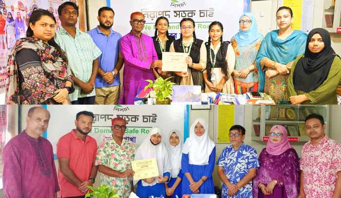 গত শনিবার ও রবিবার নিসচার নিজস্ব কার্যালয়ে বিজয়ী ও রানার্স আপ দলের শিক্ষার্থীদের হাতে সার্টিফিকেট তুলে দেন নিসচা ভৈরব শাখার সড়ক যোদ্ধাগণ।
