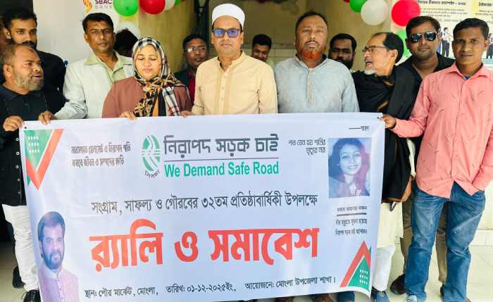 মারুফ বাবু,বাগেরহাট প্রতিনিধিঃ ‘মানসম্মত হেলমেট নিরাপদ গতি, কমবে জীবন ও সম্পদের ক্ষতি’ এই স্লোগানে মোংলায় নিরাপদ সড়ক চাই (নিসচা) এর ৩২তম প্রতিষ্ঠাবার্ষিকী উপলক্ষে বিভিন্ন কর্মসূচির আয়োজন করা হয়। কর্মসূচির মধ্যে ছিলো র্যালি, সমাবেশ, কেক কাটা, আলোচনা সভা ও সচেতনতামূলক লিফলেট বিতরণ।