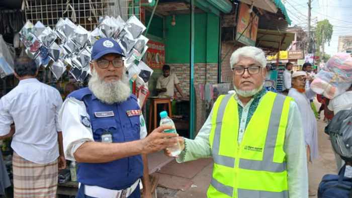 সড়ক নিরাপত্তায় নিয়োজিত ট্রাফিক সদস্যদের নিসচা জয়পুরহাট শাখার পানি উপহার প্রদান