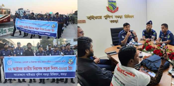 “মানসম্মত হেলমেট ও নিরাপদ গতি, কমবে জীবন ও সম্পদের ক্ষতি” আজ ২২ অক্টোবর, সারাদেশের মতো বগুড়াতেও ব্যাপক উৎসাহ-উদ্দীপনার মধ্য দিয়ে পালিত হয়েছে জাতীয় নিরাপদ সড়ক দিবস ২০২৫। দিবসটি উপলক্ষে হাইওয়ে পুলিশ বগুড়া রিজিয়ন দিনব্যাপী নানা কর্মসূচির আয়োজন করে।