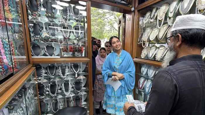 লিফলেট বিতরণের সময় জাইমা বলেন, “আমি জাইমা রহমান, তারেক রহমানের কন্যা। আমার আব্বা ঢাকা-১৭ আসনে ধানের শীষ প্রার্থী, তার পক্ষে ভোট চাইতে এসেছি। এটি (লিফলেট) নিন। দোয়া করবেন।”