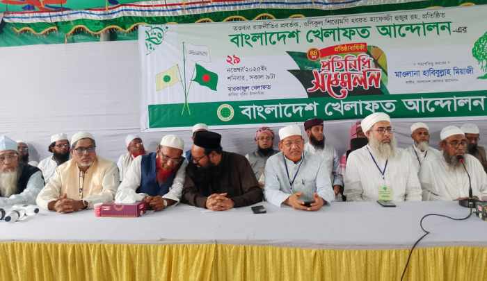আজ ২৯ শে নভেম্বর ২০২৫ ইং শনিবার সকাল ১০ টায় মারকাজুল খেলাফত কামরাঙ্গীরচর জামিয়া নুরিয়া ইসলামিয়া ময়দানে বাংলাদেশ খেলাফত আন্দোলনের ৪৪ তম প্রতিষ্ঠা বার্ষিকী উপলক্ষে কেন্দ্রীয় প্রতিনিধি সম্মেলন অনুষ্ঠিত হয়। আমিরে খেলাফত মাওলানা হাবিবুল্লাহ মিয়াজীর সভাপতিতে অনুষ্ঠিত সম্মেলনে উন্নয়নের মধ্যে বক্তব্য রাখেন, দলের মহাসচিব মাওলানা ইউসুফ সাদিক হক্কানী, জামাতে ইসলামের সহকারি সেক্রেটারি জেনারেল জনাব হামিদুর রহমান আজাদ, ইসলামী আন্দোলন বাংলাদেশের প্রেসিডিয়াম সদস্য জনাব আশরাফ আলী আকন্দ, হেফাজতে ইসলাম বাংলাদেশ এবং বাংলাদেশ খেলাফত মজলিসের নায়েবে আমির মাওলানা মহিউদ্দিন রব্বানী, খেলাফত মজলিসের নায়েবে আমির মাওলানা আহমদ আলী কাসেমী, নিজামে ইসলাম পার্টির মহাসচিব মাওলানা মূসা বিন ইজহার, মাওলানা শেখ আজিম উদ্দিন, নিরাপদ সড়ক চাইয়ের প্রতিষ্ঠাতা সদস্য ও ভাইস চেয়ারম্যান লিটন এরশাদ, জাগপা সাধারণ সম্পাদক অধ্যাপক ইকবাল হোসেন প্রধান, মুফতি সৈয়দ মুহাম্মদ আহসানুল্লাহ আব্বাসি জৈনপুরী, মাওলানা মুজিবুর রহমান হামিদী,মাওলানা সাঈদুর রহমান, মাওলানা আব্দুল মান্নান, অধ্যক্ষ মোহাম্মদ রুকনুজ্জামান রোকন, মাওলানা সানাউল্লাহ হাফেজ্জী, আলহাজ আতিকুর রহমান নান্নুমুন্সি, মাওলানা মীর ইদরীস, হাজী জালাল উদ্দিন বকুল,মাওলানা সুলতান মহিউদ্দিন, মাওলানা সাইফুল ইসলাম সুনামগঞ্জী,মাওলানা মাহবুবুর রহমান, মাওলানা মাহমুদুল হাসান শরীয়তপুরী, মাওলানা তৌহিদুজ্জামান যশোরী, মাওলানা খন্দকার মোস্তাক আহমদ, মাওলানা আনোয়ার উল্লাহ ভূঁইয়া,এডভোকেট জয়নুল আবেদিন বকুল, মাওলানা মিজানুর রহমান ফরিদপুর, মুফতি আলী হায়দার গাজীপুর, মুক্তিযোদ্ধা কারী মাসুদুল হক কিশোরগঞ্জ, মুফতি মুশাররফ হোসাইন নরসিংদী প্রমুখ।