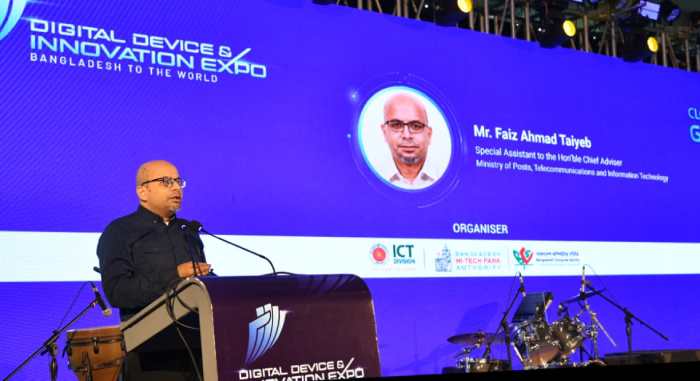 তথ্য ও যোগাযোগ প্রযুক্তি বিভাগের উদ্যোগে বাংলাদেশ হাই-টেক পার্ক কর্তৃপক্ষ ও বাংলাদেশ কম্পিউটার সমিতি (বিসিএস)-এর যৌথ আয়োজনে অনুষ্ঠিত তিনদিনব্যাপী “ডিজিটাল ডিভাইস ও ইনোভেশন এক্সপো ২০২৬” এর সমাপনী অনুষ্ঠানে প্রধান অতিথির বক্তব্যে আজ রাজধানীর হোটেল ইন্টারকন্টিনেন্টালে একথা বলেন প্রধান উপদেষ্টার ডাক, টেলিযোগাযোগ ও তথ্যপ্রযুক্তি মন্ত্রণালয়ের দায়িত্বপ্রাপ্ত বিশেষ সহকারী ফয়েজ আহমদ তৈয়্যব।