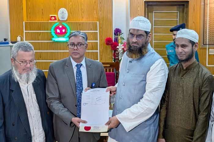 ঢাকা-১৩ আসনের জন্য মনোনয়নপত্র জমা দিয়েছেন বাংলাদেশ খেলাফত মজলিসের আমির মাওলানা মুহাম্মাদ মামুনুল হক।