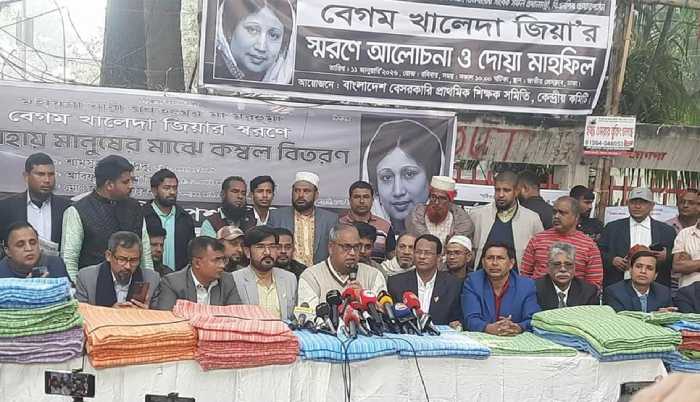 আজ বৃহস্পতিবার দুপুরে জাতীয় প্রেসক্লাবের সামনে জাতীয়তাবাদী পেশাজীবী দলের উদ্যোগে বেগম খালেদা জিয়ার স্মরণে অসহায় মানুষের মাঝে কম্বল বিতরণ অনুষ্ঠানে তিনি এসব কথা বলেন।